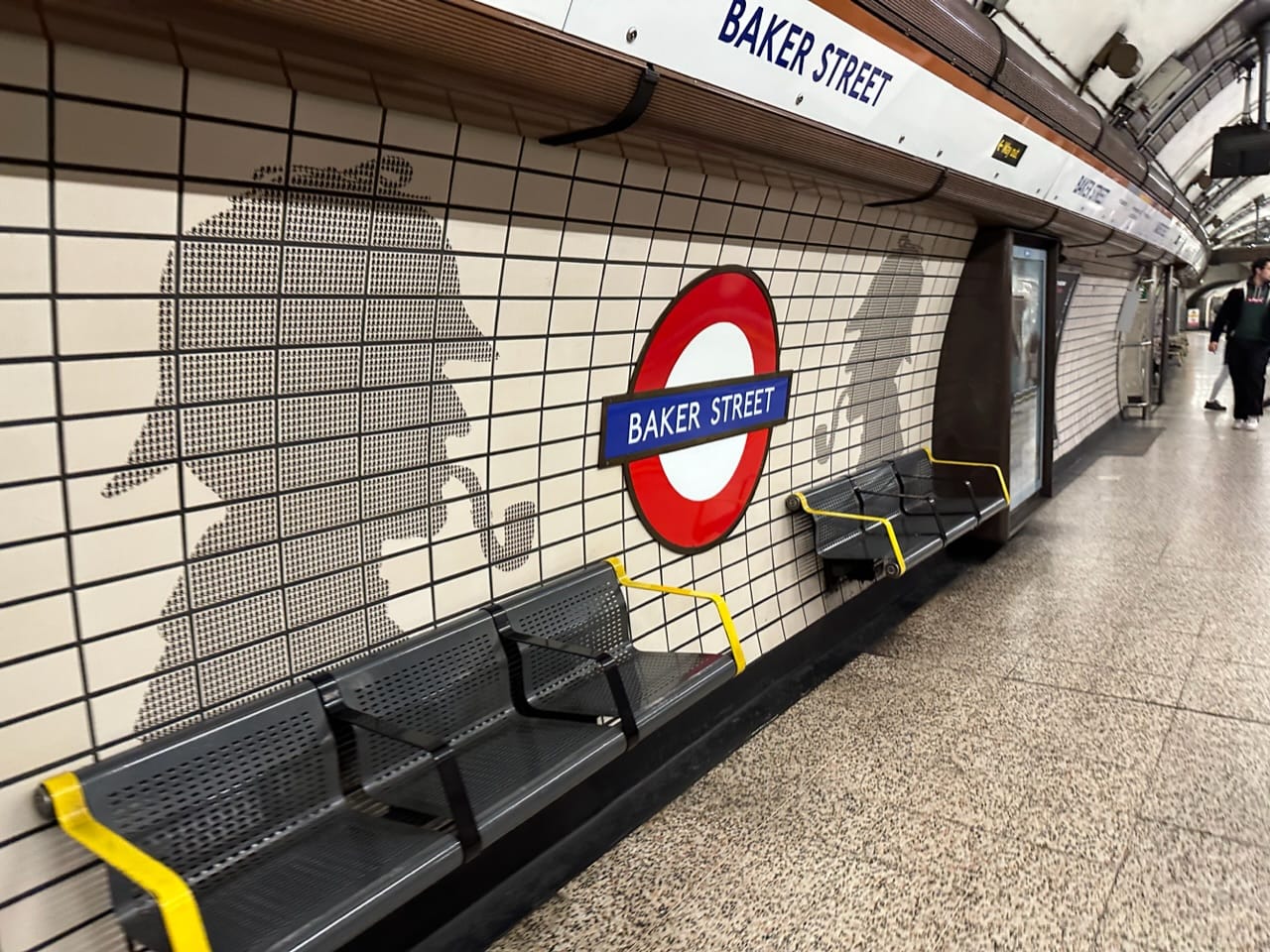 A third wayfinding strategy that London employees is focused on riders aboard trains. Station names are repeatedly highlighted conspicuously at platforms so riders are assured what is being reached as the train slows. Station name signs dot platform walls and benches. These are very bold and clearly identifiable because of the iconic London roundel and signage bands.