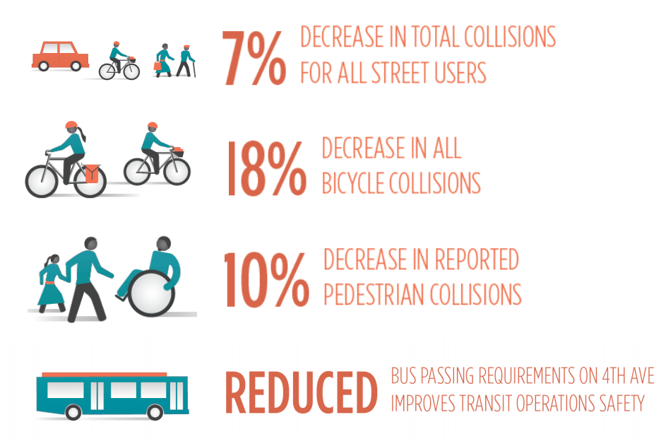 We will not see these improvements if we don’t move forward with a comprehensive approach to remaking 4th Avenue, and its counterpart, the 5th & 6th Avenue transit pathway, as soon as possible. Pulling out segments of the plan that was arrived at with the help of out most important regional agencies because they are politically unpalatable sounds like the work of a previous occupant of city hall. It’s time to put safety–and moving people–first.