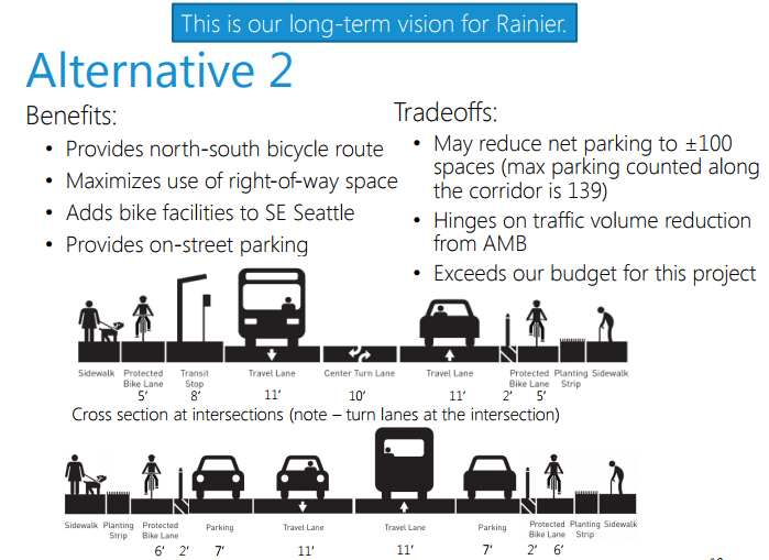 Attend Rainier Avenue presentation at Pedestrian Advisory Board meeting Wednesday – The Seattle Pedestrian Advisory Board will get the latest from Seattle Department of Transportation (SDOT) on its Rainier Avenue S redesign to accommodate RapidRide buses and people seeking to get around without cars. We toured the Rainier last fall to see the segment getting the redesign. SDOT seems set on eliminating Alternative 2, which includes protected bike lanes, at this stage. The meeting is at 6pm Wednesday at room L280 at Seattle City Hall.