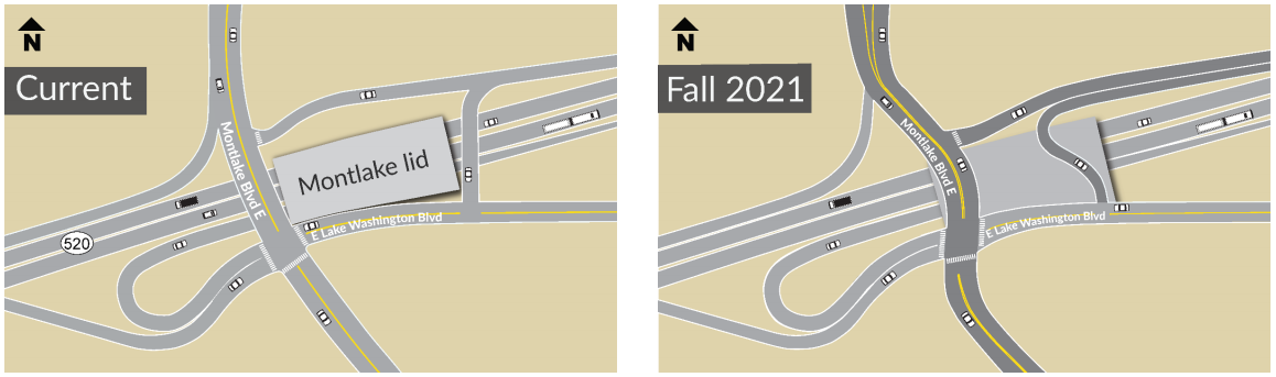 This coming weekend Montlake Boulevard over SR-520 will be completely closed between Roanoke and Hamlin Streets so that the entire roadway can be shifted east onto what will become the Montlake open space lid. The change will allow for crews to extend the lid structure to the west, making space for the newly rebuilt Montlake Boulevard.