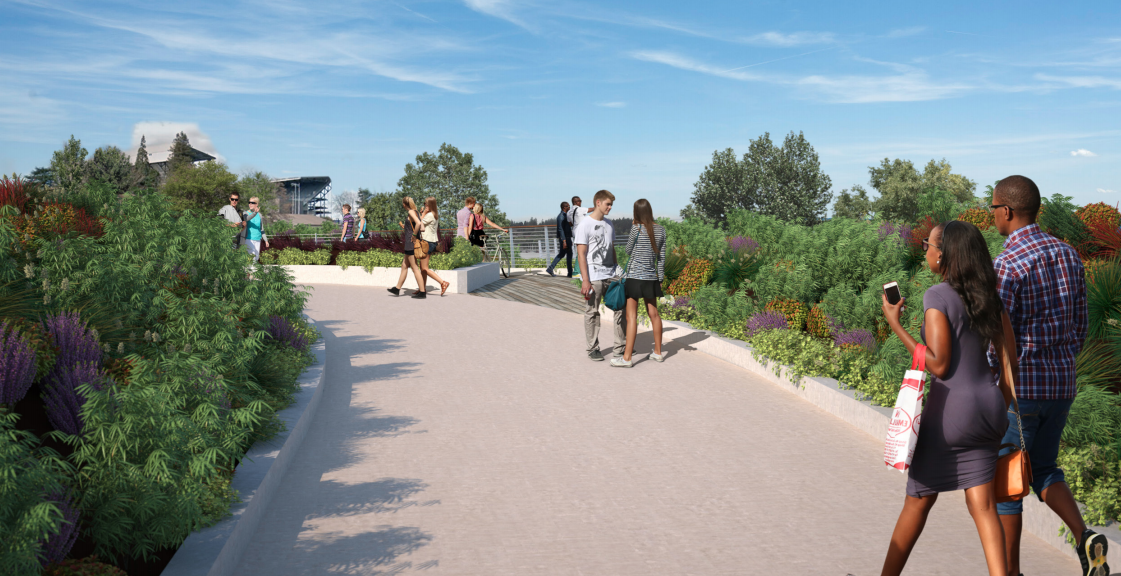 The bike and pedestrian overpass is a result of the Montlake lid being scaled back dramatically compared to the original concepts for the lid. A 1,400 foot lid was originally envisioned in Montlake, but after working with the Seattle Design Commission, an 800 foot lid moved forward that removed “areas of the lid that would have had poor public access and would not have met the project goals of providing safe public space,” according to WSDOT’s update to the EIS. The larger lid would have necessitated ventilation structures and an operations and maintenance facility, which would have themselves taken up space on the lid itself. The coming “land bridge” will be the best connection for people on bikes to connect from the Washington Arboretum up into Montlake. Unlike a normal overpass, it is being built with heavy landscaping and overlook features that will make it function a little more like a freeway lid.