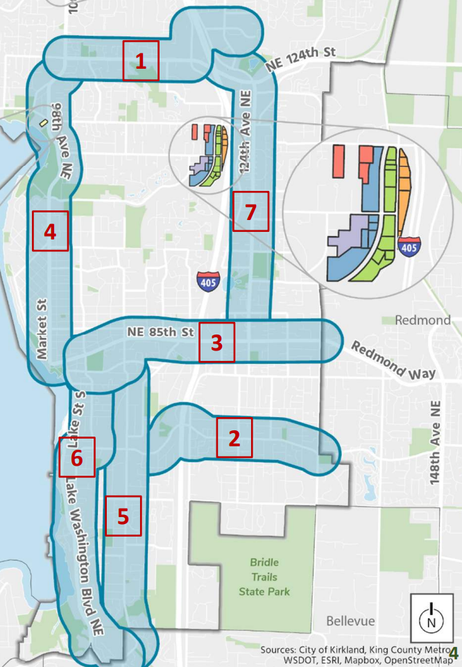 Zike noted that Kirkland’s current Comprehensive Plan, adopted in 2015, includes language encouraging more density around frequent transit, though those connections are less direct, recommending that the city “provide a land use pattern and connected transportation network” that promotes multimodal safety and reduces overall driving in the city.