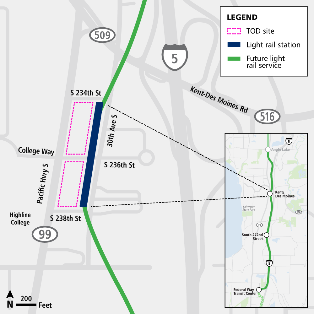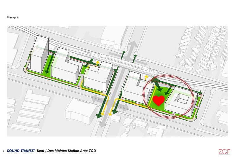 Two surplus lots are up for redevelopment at the future Kent/Des Moines Station. Sound Transit has about four acres of land that it wants to infill with transit-oriented development (TOD), but how that will happen is still up for a debate. The agency is sharing some development concepts and seeking additional feedback on development priorities in a second outreach phase.