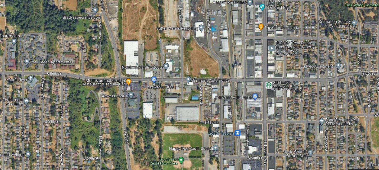 At the same time, the City has announced plans to engage residents living along South Tacoma Way, a major thoroughfare that runs near the proposed development, in a revisioning of its business district through its Neighborhood Planning Program. Much of South Tacoma Way consists of strip malls and used auto lots. A small stretch at the intersections of S 56th offers a small but thriving collection of local businesses, restaurants, and bars, and there’s a Sounder station just a couple blocks away.