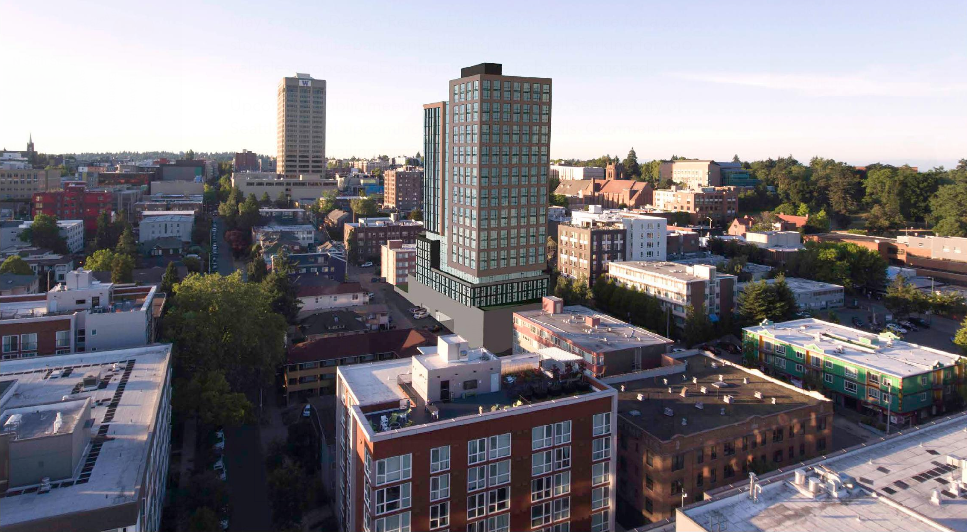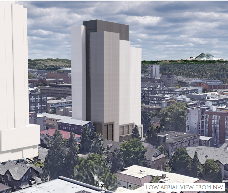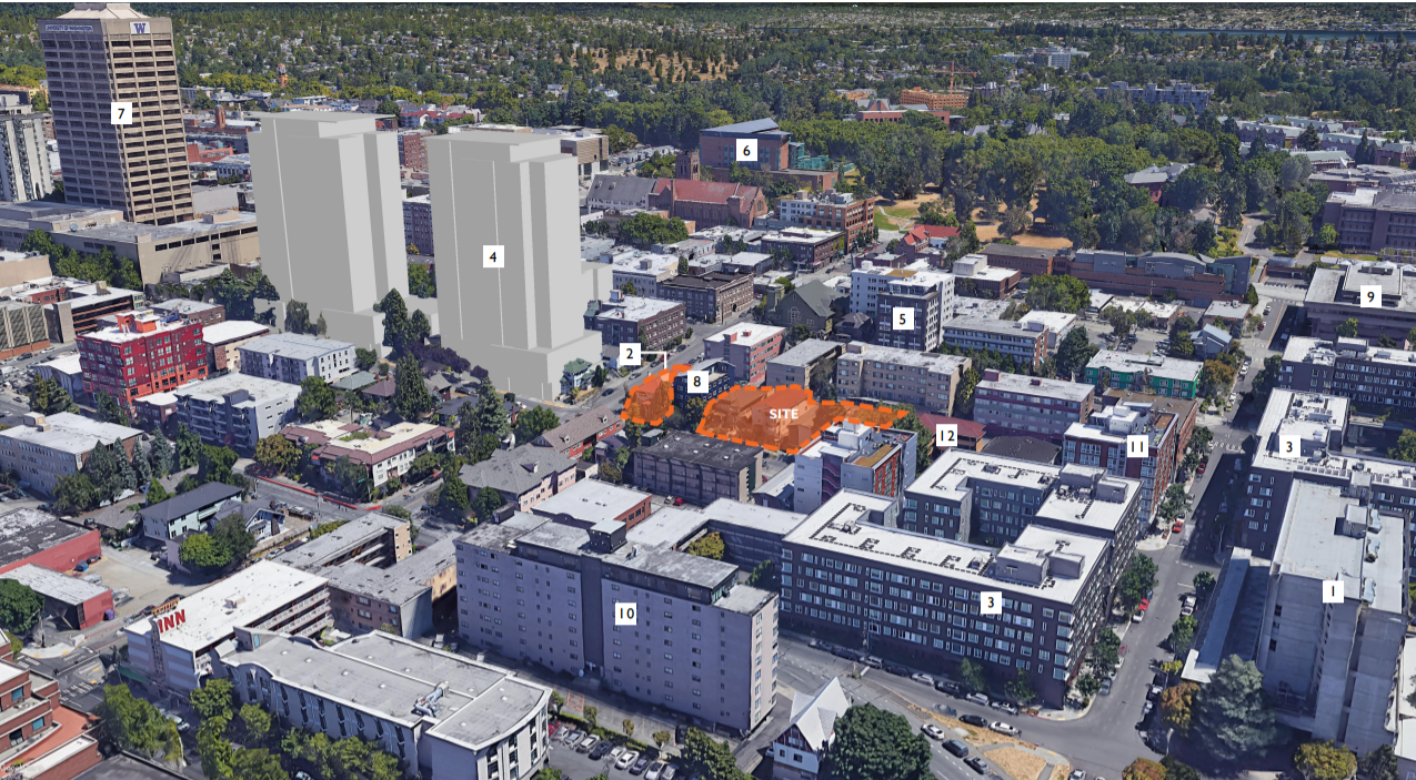 The U District is likely to become the second major highrise area in Seattle outside of the Downtown core. Already a few highrises exist there, with tallest among them UW Tower, formerly a Safeco office building. The 325-foot-tall tower was completed in 1975 before the neighborhood was downzoned in subsequent decades. But the neighborhood is gearing up for highrise density again with the 2017 MHA rezone.