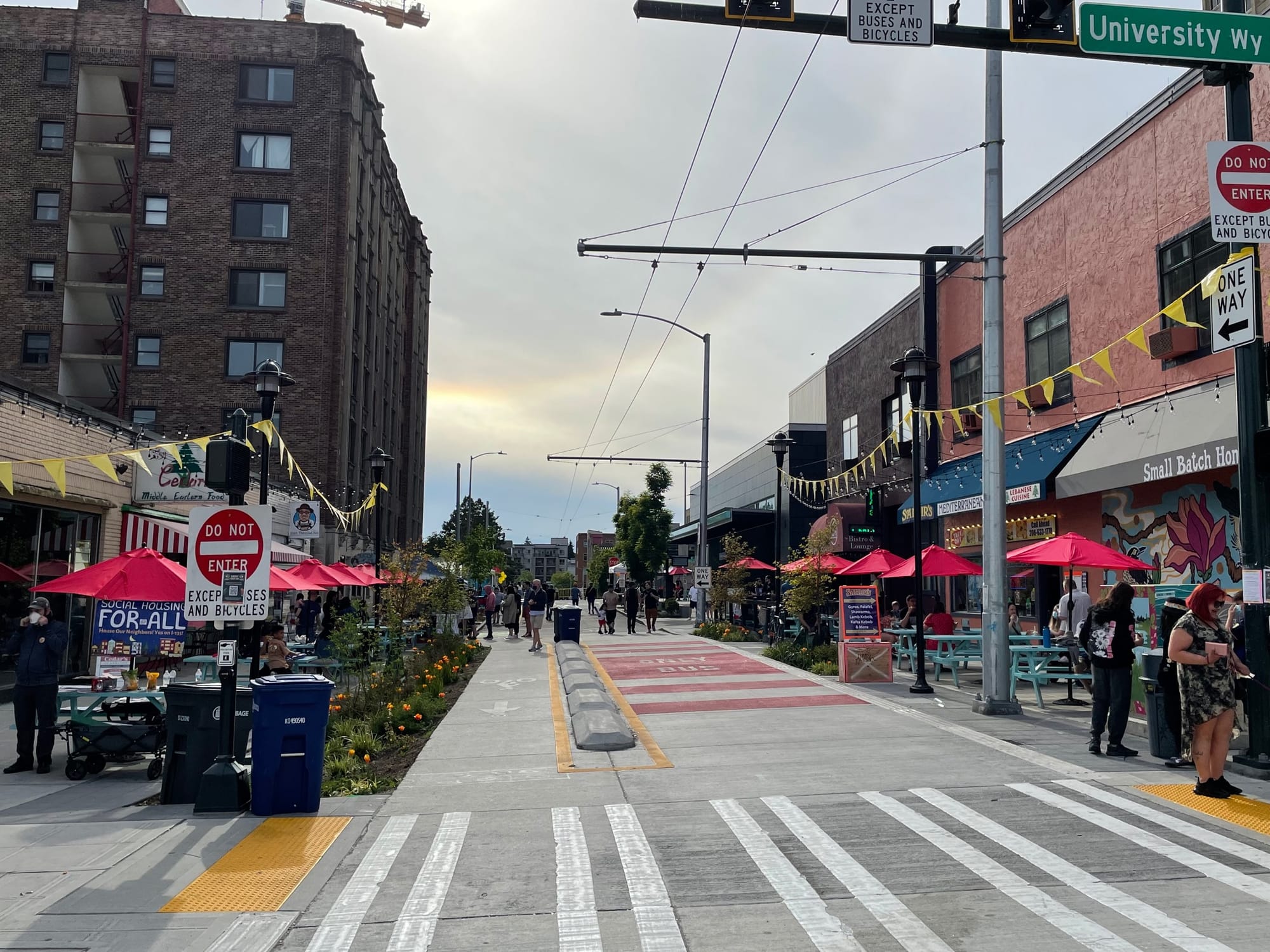The foot traffic-heavy Ave is no stranger to temporary pedestrianization. North of 50th Street, the U District Farmer's Market takes over the street every Saturday. And once every summer, the entire Ave closes down to vehicles for the U District Street Fair, one of the city's most popular summer festivals.