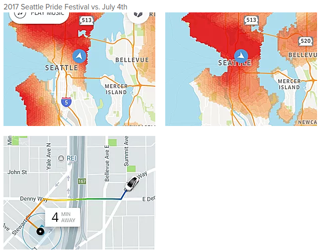 Seattle’s Pride Festival in 2016 included over 500,000 people and this year’s Pride festival was estimated to be about 200,000 folks. One of the reasons that the crowd numbers decreased was because we had record breaking heat during that weekend. These numbers have an direct impact on road congestion. So when it comes to picking up folks, you have to be in and out. Drop-off and pick-up zones can be seen as one of the main urban design elements needed to be addressed in planning our cities for self-driving cars in order to help decongest roads during major events and peak hours.