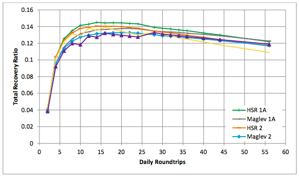 An interesting finding in the feasibility study was that maglev would be projected to become profitable sooner than conventional high-speed rail. CH2M suggests that a maglev corridor could fully fund operational costs by 2035 while conventional high-speed rail would achieve full operational cost recovery by 2055. In a way, that makes some sense since costs for overall maintenance and operations would be lower and ridership would be slightly higher with maglev.