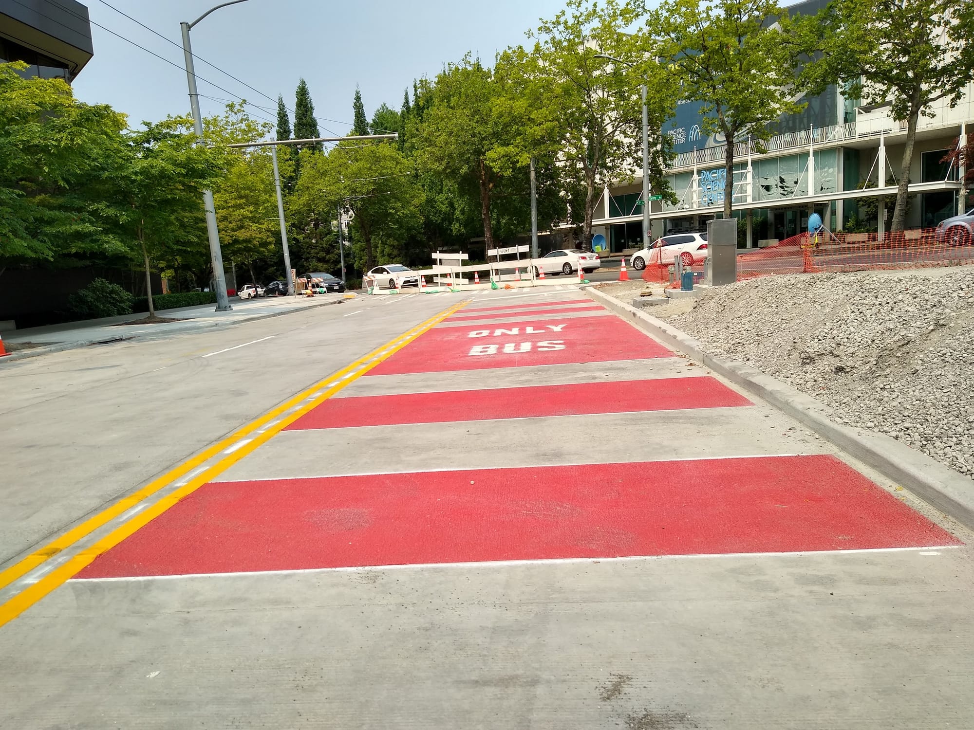 Also taking shape right now is a direct northbound connection between the 3rd Avenue bus corridor and Denny Way. Buses heading to Uptown or Magnolia have always had to take a turn from 3rd Avenue onto Broad Street and then onto 1st Avenue to keep going north, but the added transit lane and new traffic signal will allow buses to turn directly from 3rd Avenue onto Denny Way, saving Metro dozens of hours per year and saving riders’ time.