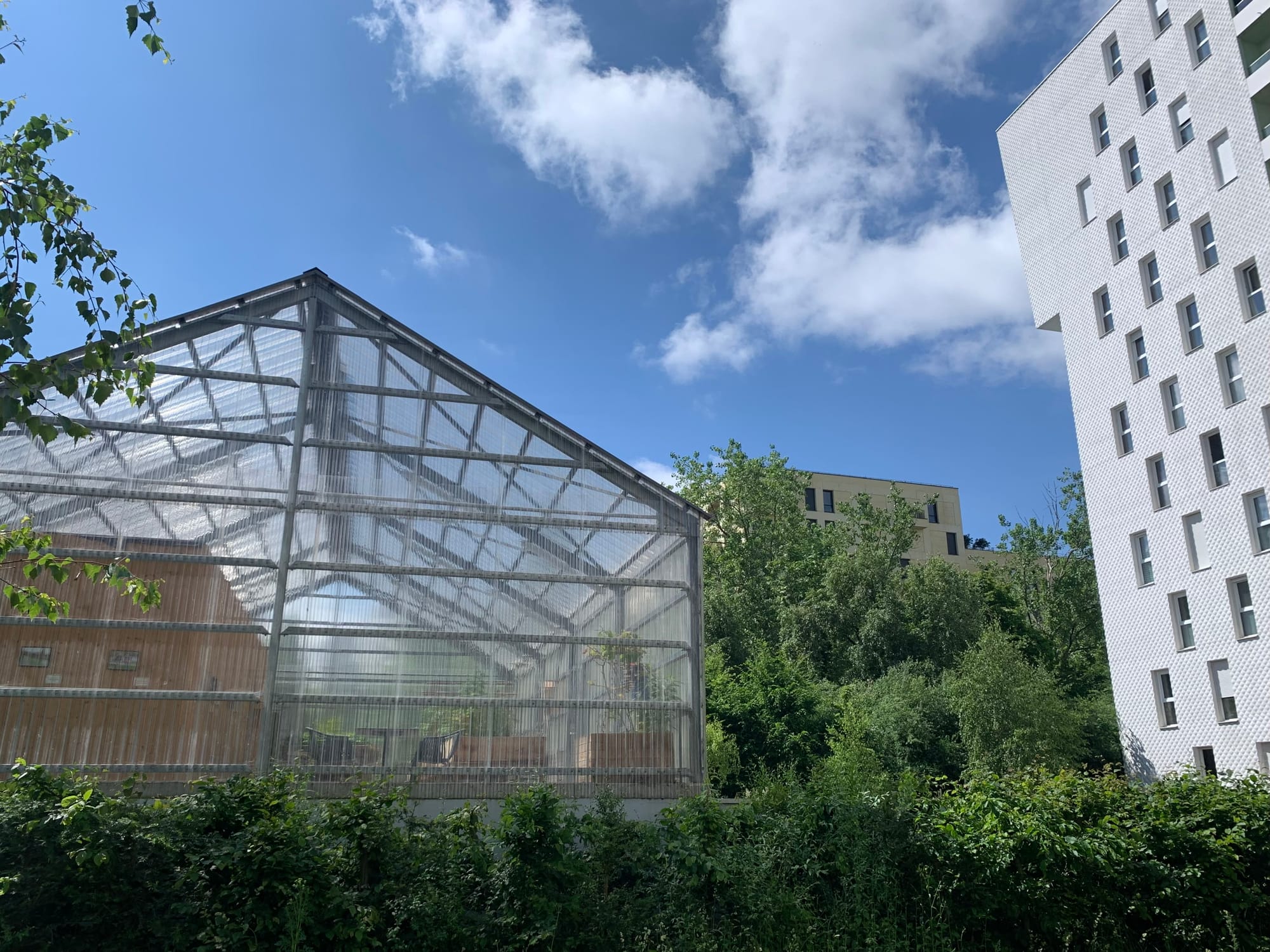 The 220-acre La Courrouze site is planned to contain two metro stops as well as comprehensive walking and biking infrastructure. A free bike sharing program, nature park with trails, community gardens, athletic facilities, children’s play areas, preschool, greenhouse with community meeting space, affordable housing for seniors and university students, commercial and office space, and a former industrial hall converted into an events center are all notable features that have been incorporated into the neighborhood’s plans.