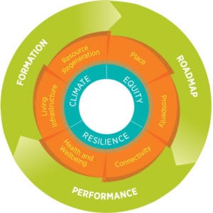 When thinking about EcoDistricts, it’s helpful to consider the EcoDistrict as having two primary components: physical infrastructure and social and cultural networks.