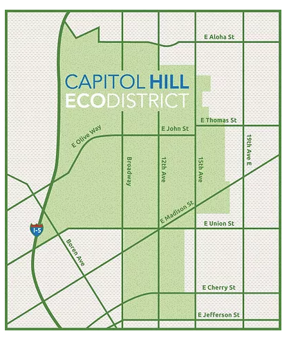 In Seattle, the Capitol Hill EcoDistrict, which was started in 2011, has received EcoDistricts’ official certification for its work improving the Capitol Hill neighborhood. According to its website, the Capitol Hill EcoDistrict “is a community-driven effort that promotes an environmentally resilient, socially equitable, and culturally vibrant neighborhood in Seattle’s center city.”
