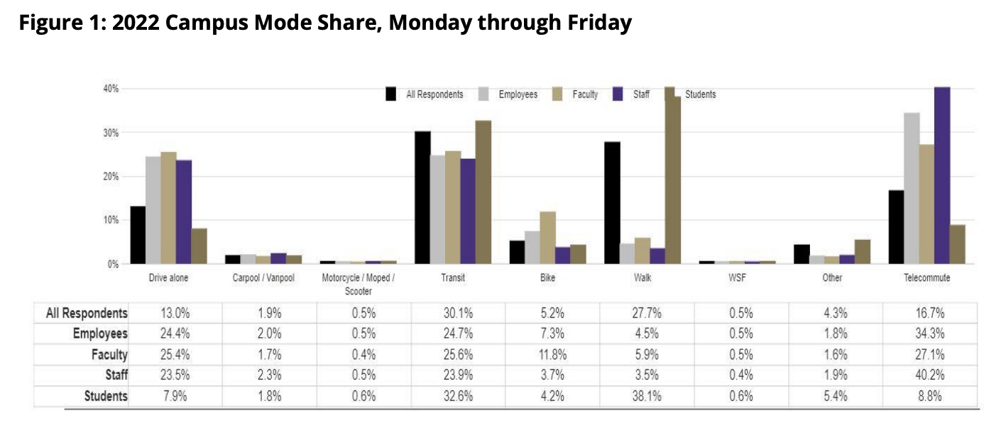 UW’s 2022 transportation survey results show them well below the cap set in the Campus Master Plan:
