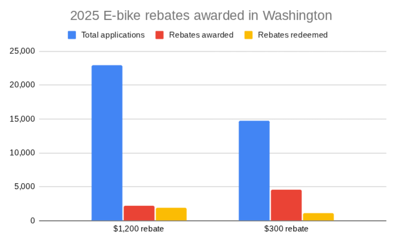Funded by the legislature using proceeds from carbon auctions under the Climate Commitment Act, the Washington State Department of Transportation (WSDOT) has $7 million on hand for e-bike rebates through next year, more dollars than were available last year.