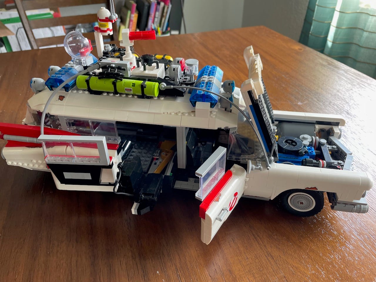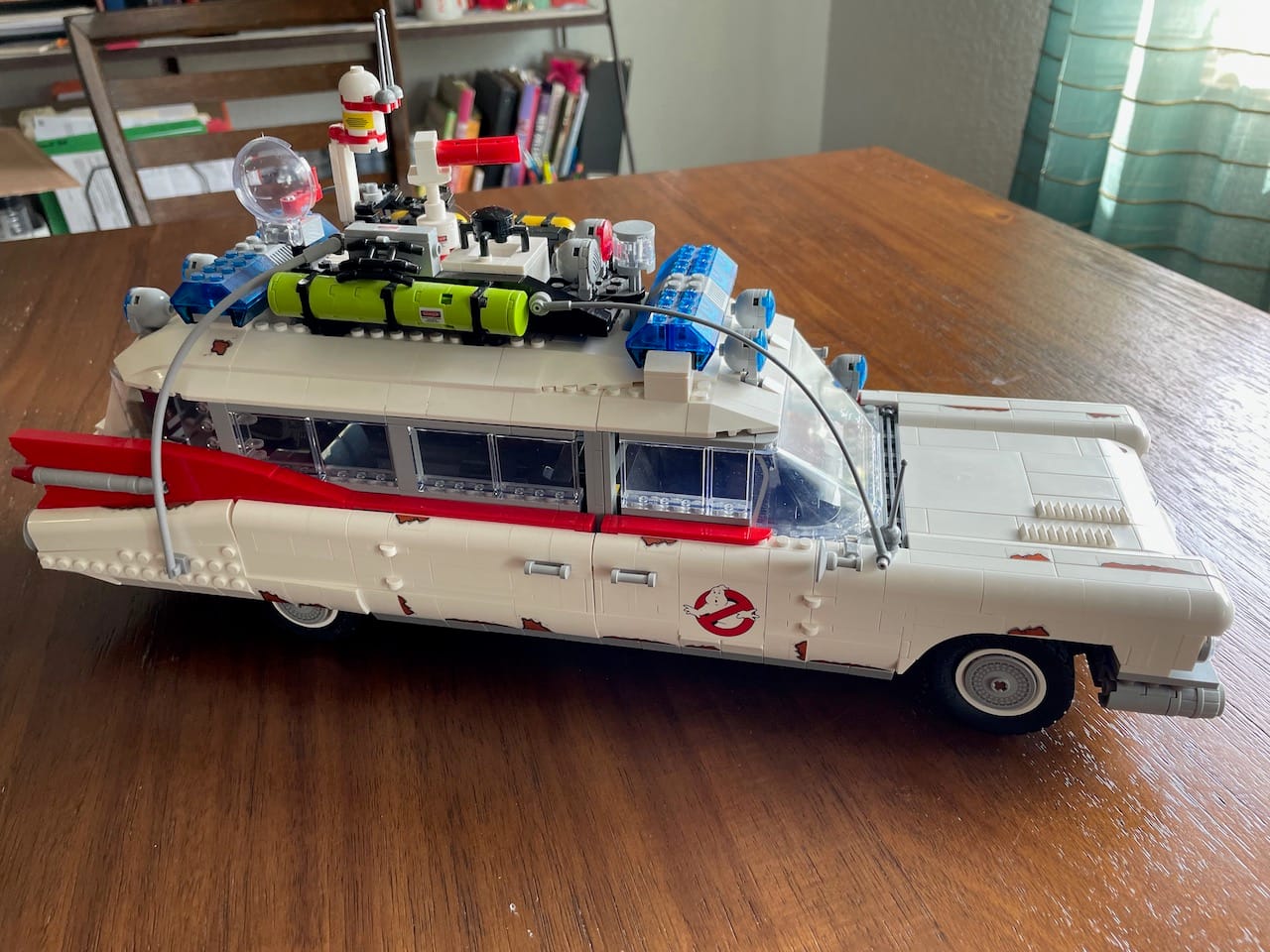 When it’s done, it will go on the shelf to join a 1959 Cadillac Miller-Meteor Sentinel that was uniquely modified with backpack proton accelerators and ecto-containment facilities. Some day, I hope to complete this set of Lego car models with a 1974 Dodge Monaco uniquely modified with the Mount Prospect Police logo, no cigarette lighter, and a very large megaphone on the roof. Alas, that set does not yet exist. HINT HINT, LEGO.