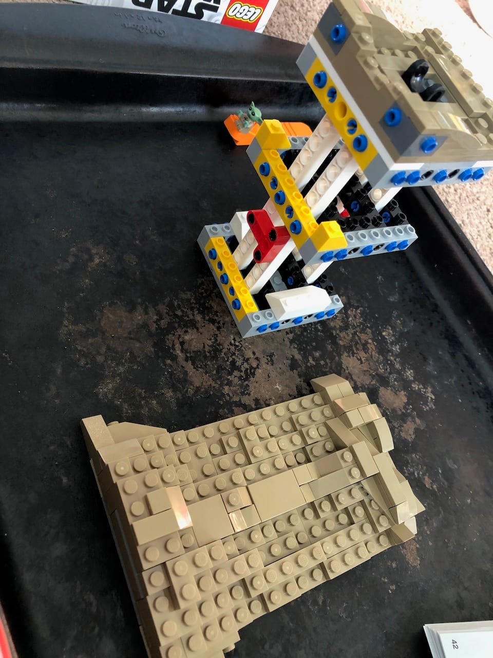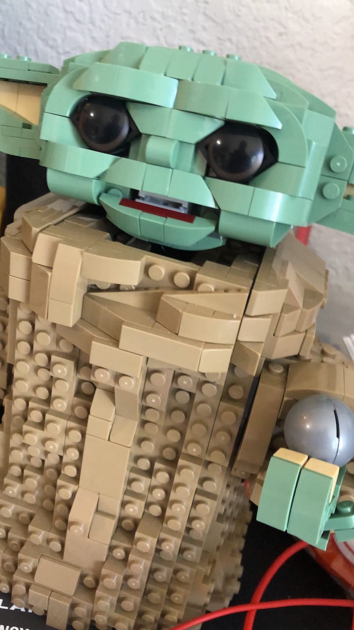 Modern Legos are a delight to build. Instead of row after row of individual gray blocks layering up to a castle, the sets are colorful, dynamic, three dimensional constructions. The Lego Grogu is essentially a statue of the Star Wars character, but building it is a lesson in squaring the circle. It starts with a rectangular frame then each side of The Child’s robe is separately built and attached vertically. The panels look like landscapes, building up angles and blocks to this organic fabric shape. There is a deep satisfaction in seeing this sculpture evolve.