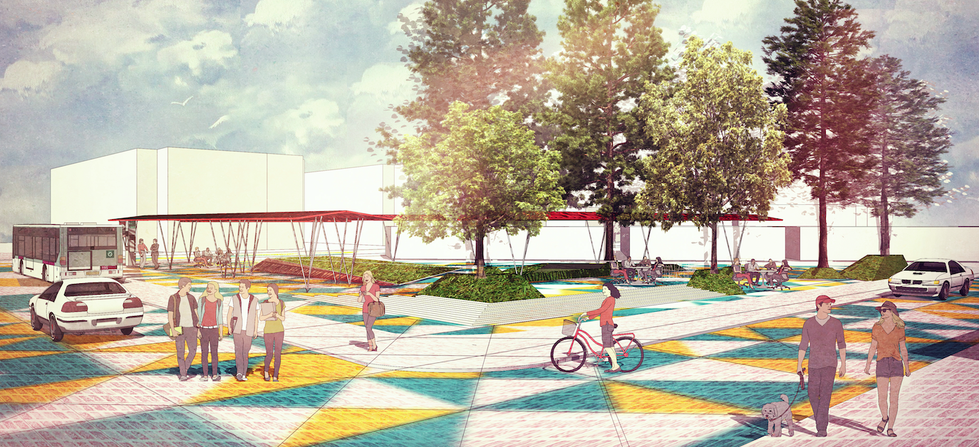 Rose Triangle Commons by Juliana Hom and Mo Li is a studio project proposing the creation of a neighborhood cultural and transportation hub on a leftover lot in the Rainier Valley neighborhood of Seattle.