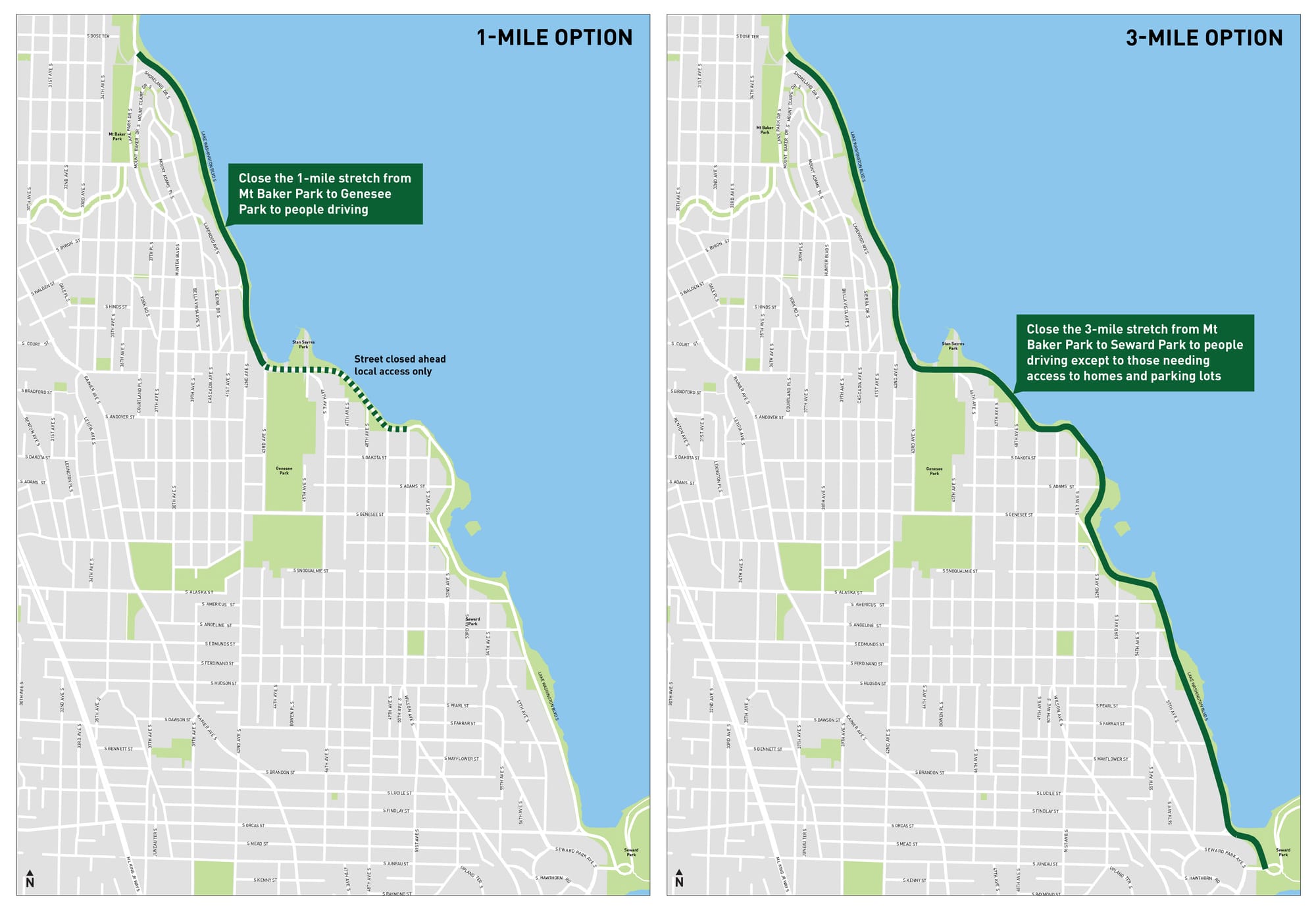 Since the summer pilot, SDOT moved to implement a shorter open street on Lake Washington Boulevard over holiday weekends and school breaks. This one-mile closure between Mount Baker Beach and Genesee Park has been tantalizing; venturing down to Seward Park anyway means sharing the road with drivers who may be annoyed at the one-mile closure or navigating the narrow path along the road.
