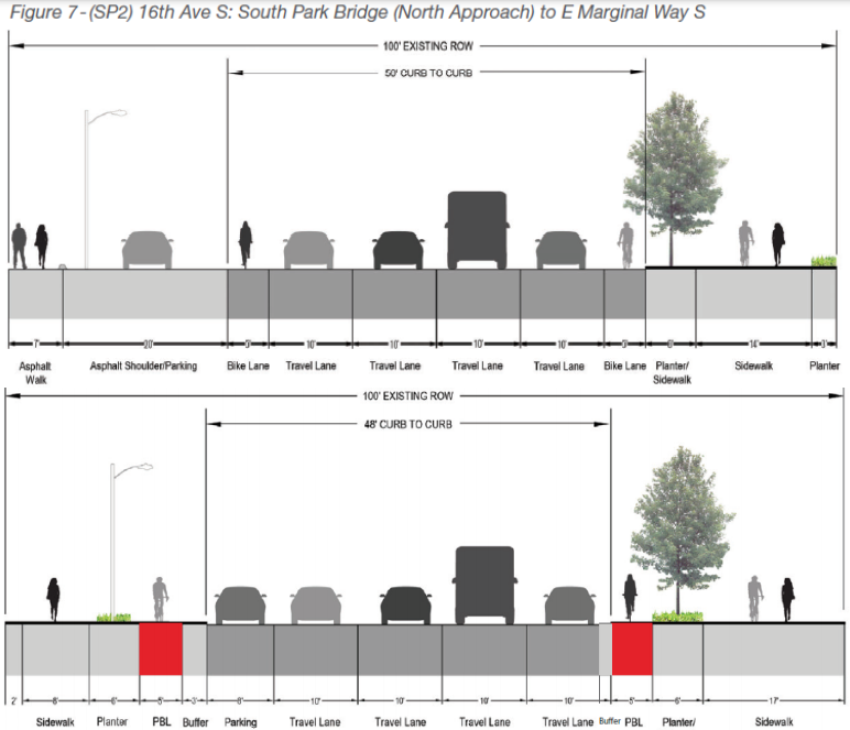 That design will run between East Marginal Way and the start of the South Park Bridge itself. No changes are planned on the actual bridge.