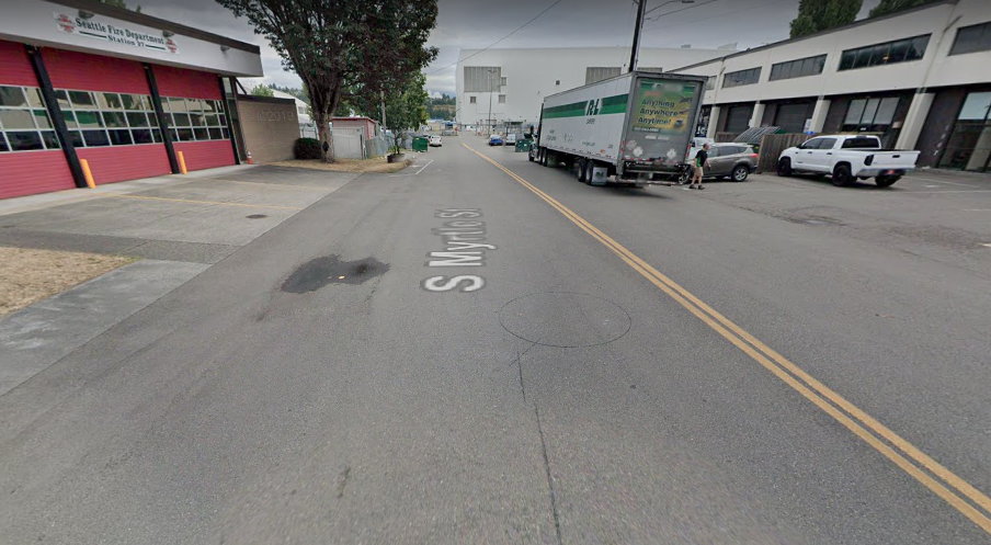 At that point, the trail heads away from the freight corridor on Ellis Avenue S and turns onto S Myrtle Street, a street that currently dead-ends at the airport. The trail will run in front of a Seattle fire station at this point. At the end of the block on Myrtle, trail users will cross the street and continue on the only segment of the trail that isn’t an existing street right-of-way.