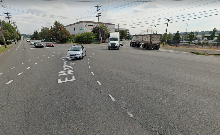East Marginal Way will be the biggest improvement planned for people walking and biking along this route: the street is currently six lanes wide and traffic is heavy and fast. There are painted bike lanes in both directions on this street, but it’s absolutely a route for only the most assertive cyclists. At certain points, the bike lane swaps positions with a turn lane and people biking have to navigate that with traffic often going well over 30 mph.