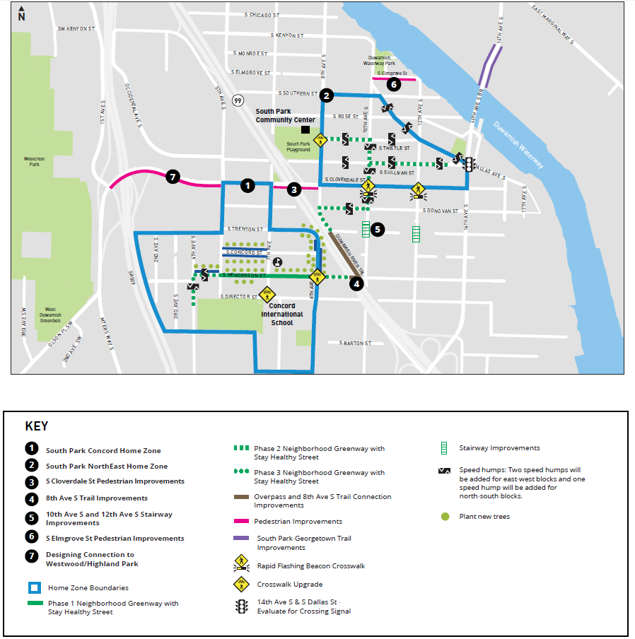 On the South Park side, no improvements are planned as part of this project. But traffic calming improvements coming to the neighborhood as part of the Reconnect West Seattle program are intended to provide the neighborhood with increased walking and biking connectivity. People biking across the bridge will likely turn onto Dallas Avenue S, which is getting speed cushions installed this spring. At 8th Avenue S, you can connect to the Duwamish River Trail but there is an entire slew of improvements planned in South Park to make it easier to travel between portions of the neighborhood, even if none of those improvements include separated bike facilities on an arterial.