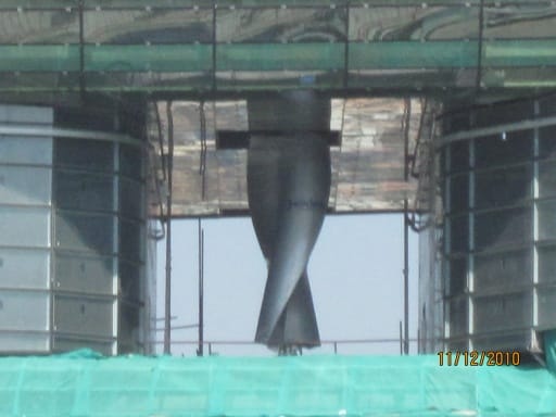 The Pearl River Tower in Guangzhou, China is built to maximize wind flow to its four large Savonius vertical access wind turbines. The turbines are strategically placed in the four openings in that tower, which enhances ambient wind speed up to 2.5 times the speed. The inlets also help minimize load effects from wind forces that reduce construction materials and costs.