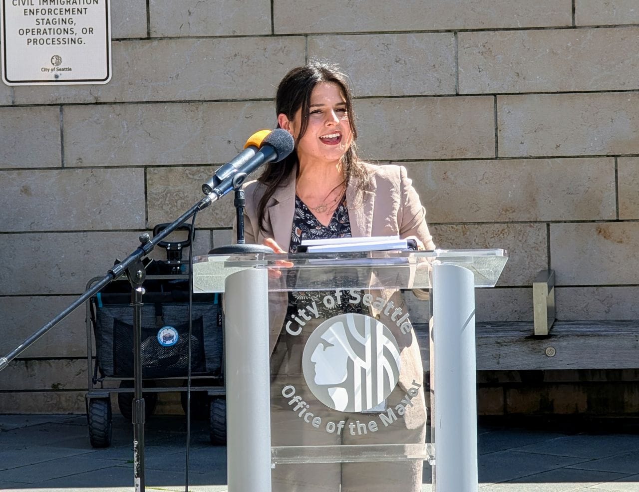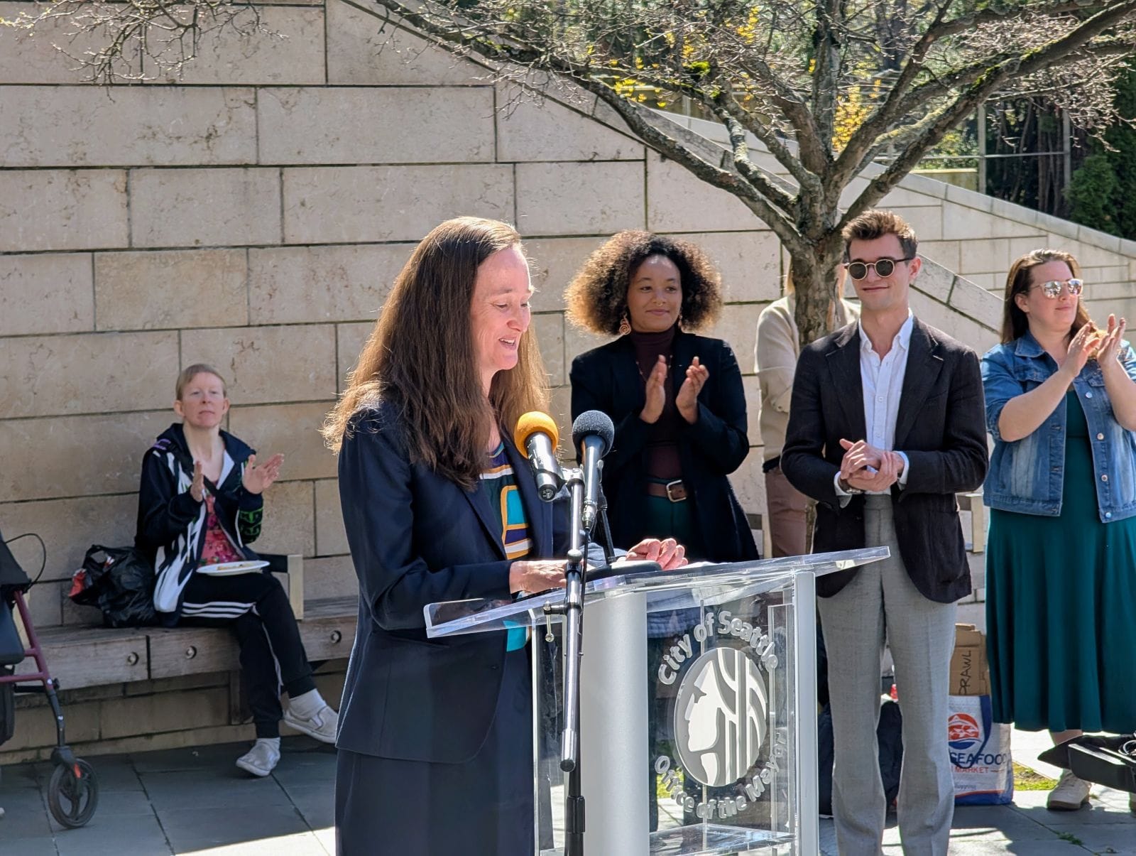 The upshot of that election is that Seattle now has a "Yes In My Backyard" (YIMBY) urbanist mayor raising the banner and pushing city councilmembers to go bigger – a YIMBY-in-chief, as House Our Neighbors' co-Executive Director Jeff Paul called her introducing her.