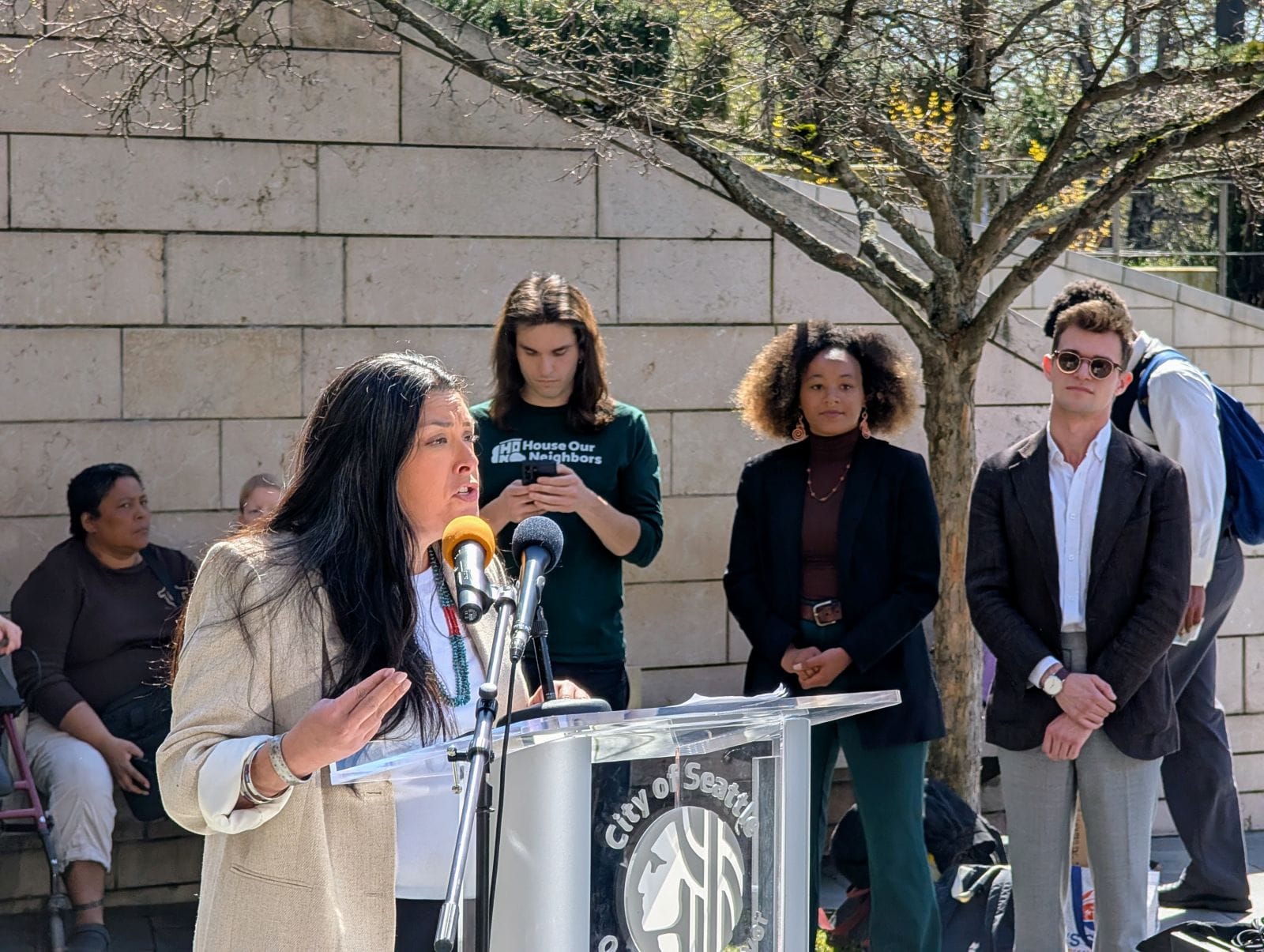 While Wilson referenced racial equity and economic justice, some speakers at Monday's rally hammered that point home, particularly Colleen Echohawk, who ran for Mayor in 2021, earning the endorsement of The Urbanist Elections Committee (on which I serve).