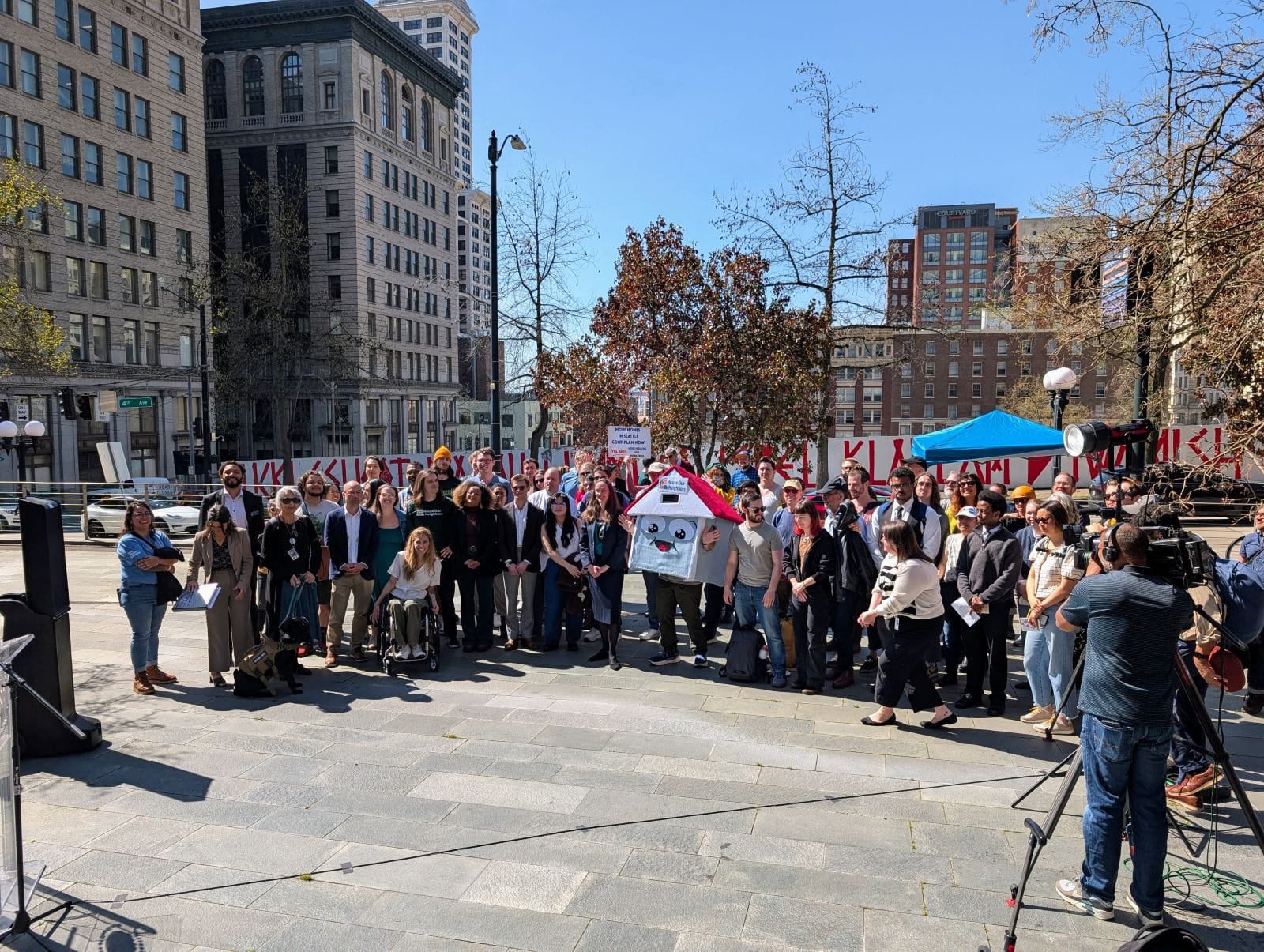 On Monday, housing advocates gathered on the steps of Seattle City Hall to rally support for broader zoning changes in the Seattle Comprehensive Plan. Mayor Katie Wilson spoke and called the City's "Centers and Corridors" plan to allow apartments within a half-block of frequent transit a "stingy" approach. She reiterated her "taller, denser, faster" vision for overhauling Phase 3 of the plan.