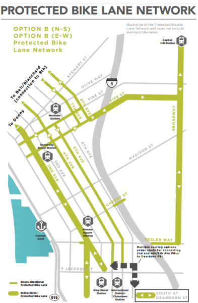 | D | $28 million | $0 | Turns Fifth Avenue into a transit street between Stewart to Jackson |