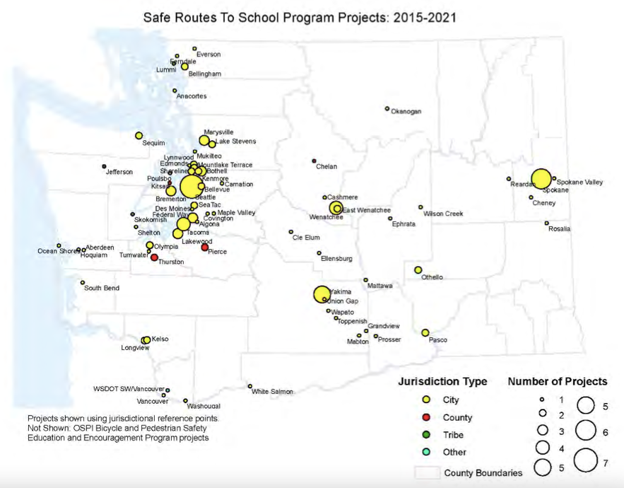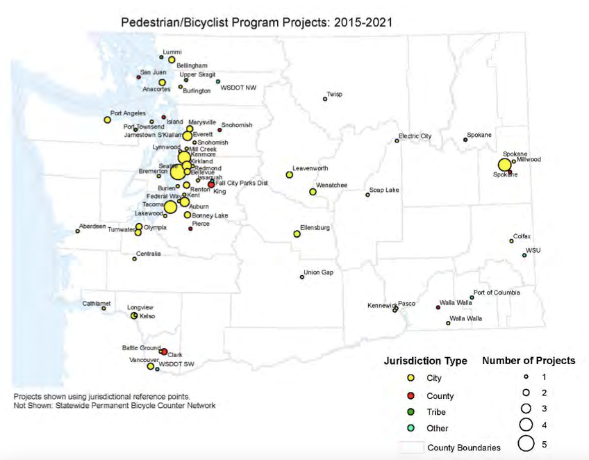 Last December, WSDOT completed a status report and recommendations for change for its pedestrian, bicyclist, and Safe Routes to School programs. While the agency found that the programs certainly had their share of successes, for instance, a 2005-2019 analysis of all projects found a 36-44% decrease in bicyclist and pedestrian crashes at project sites, it also shed light on areas in need of improvement. One of these was the distribution of projects.