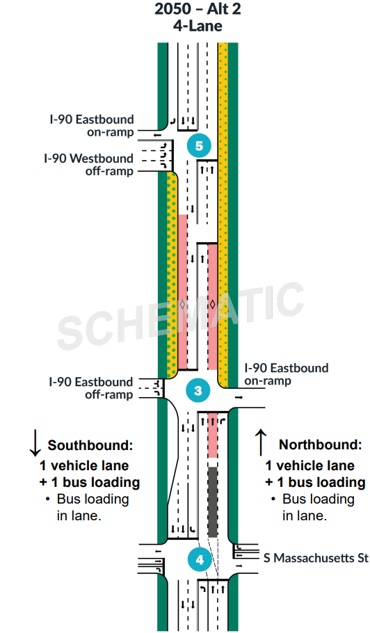 Other options looked at included squaring up all four ramps to improve visibility and reduce speeds, and removing some of the other ramps, including the one between the light rail station entrance and S Massachusetts Street. But removing other ramps, according to WSDOT’s modelling, would have caused traffic to back up I-90, and those alternatives were taken off the table.